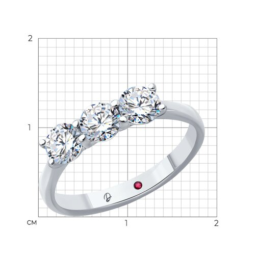 Кольцо из белого золота с выращенными бриллиантами и рубином Diamant 52-210-02403-1