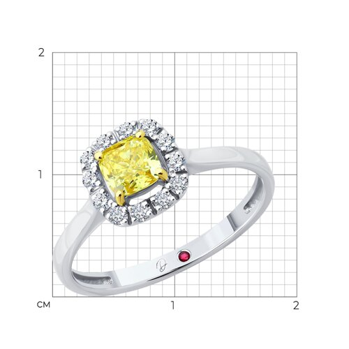 Кольцо из белого золота с выращенными бриллиантами и рубином Diamant 52-210-02643-1