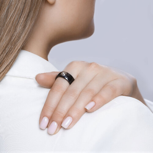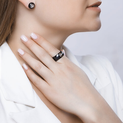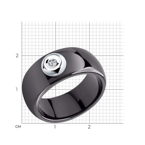 Кольцо из чёрной керамики с белым золотом и бриллиантом SOKOLOV 6015011