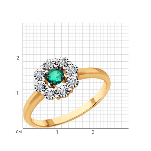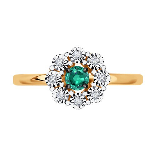 Кольцо из комбинированного золота с бриллиантами и изумрудом Diamant 51-210-01776-2
