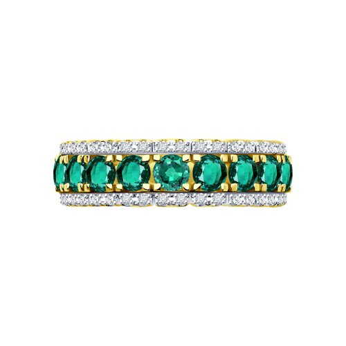 Кольцо из желтого золота с бриллиантами и изумрудами SOKOLOV 3010617-2