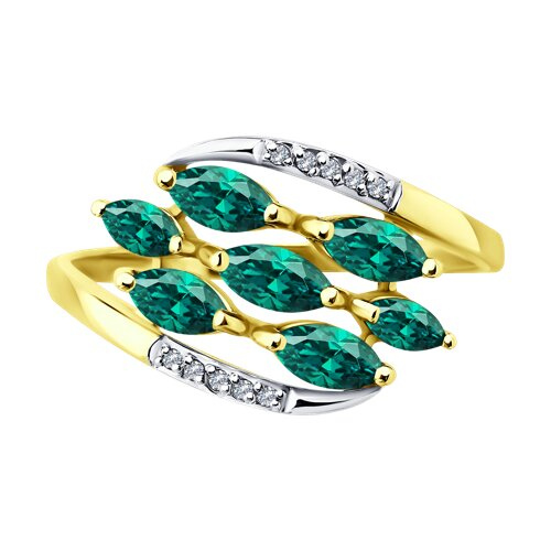 Кольцо из желтого золота с бриллиантами и изумрудами SOKOLOV 3010769-2