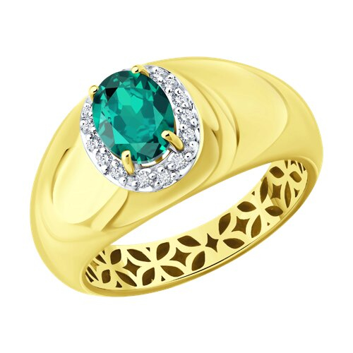 Кольцо из желтого золота с бриллиантами и изумрудом SOKOLOV 3010795-2