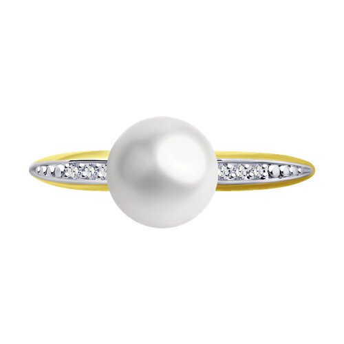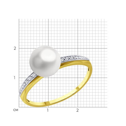 Кольцо из желтого золота с бриллиантами и жемчугом Diamant 53-210-01824-1