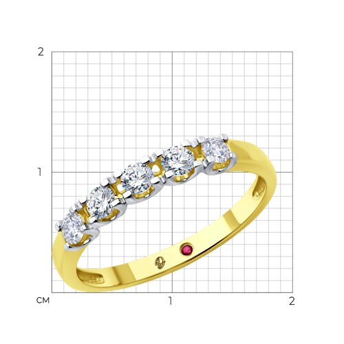 Кольцо из желтого золота с бриллиантом выращенным и рубином Diamant 53-210-02495-1