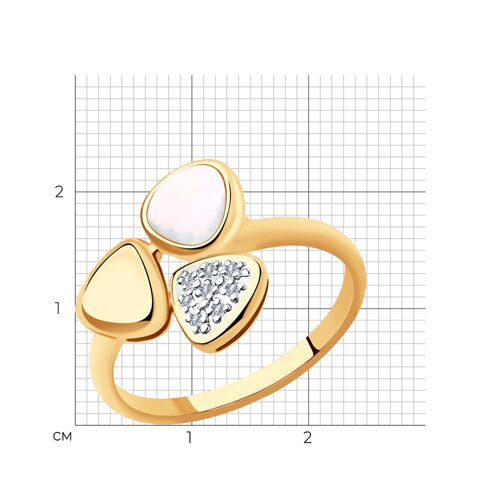 Кольцо из золота с бриллиантами и дуплетом из натурального кварца и перламутра SOKOLOV 1011883-5
