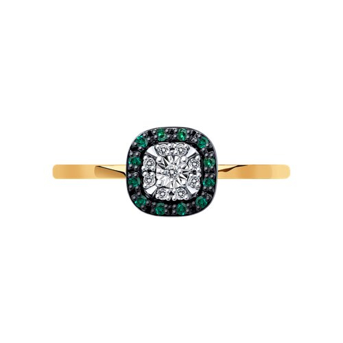 Кольцо из комбинированного золота с бриллиантами и изумрудами SOKOLOV 3010624