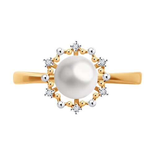 Кольцо из золота с бриллиантами и жемчугом Diamant 51-210-02021-1