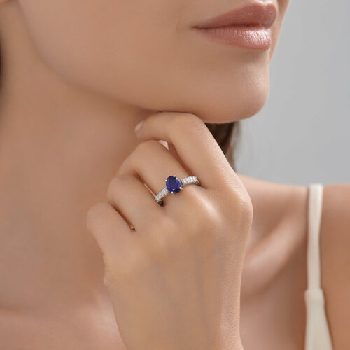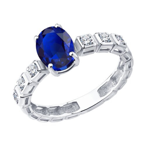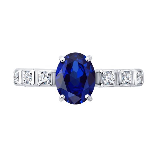 Кольцо из белого золота с сапфиром и бриллиантами выращенными SOKOLOV 2011350-3-5