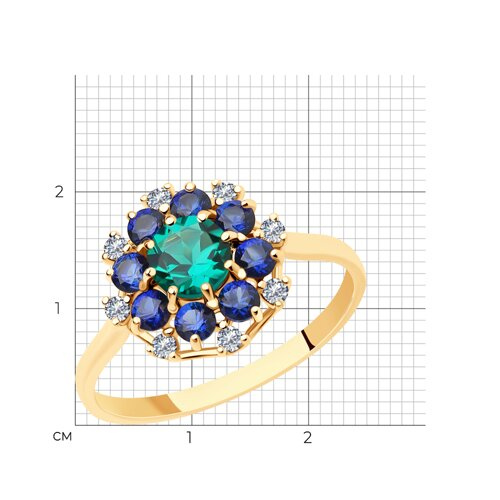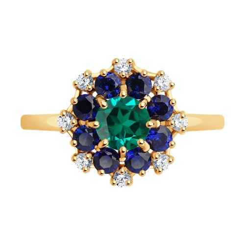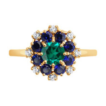 Кольцо золотое пробы 585 с изумрудом гидротермальным SOKOLOV 716500