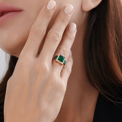 Кольцо золотое пробы 585 с изумрудом гидротермальным SOKOLOV 71-00374