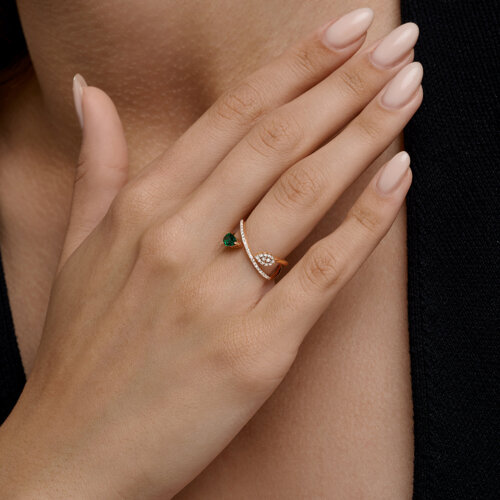 Кольцо золотое пробы 585 с изумрудом гидротермальным SOKOLOV 71-00442