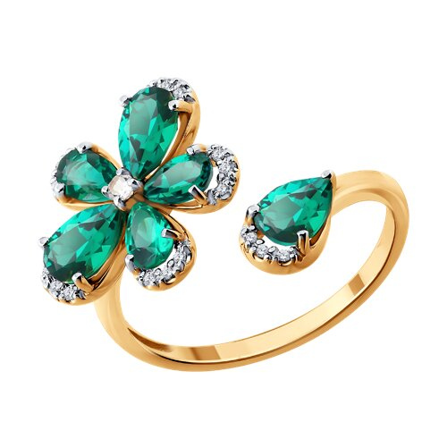Кольцо золотое пробы 585 с изумрудом гидротермальным SOKOLOV 71-00463