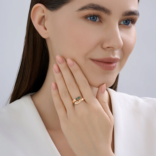 Кольцо золотое пробы 585 с изумрудом гидротермальным SOKOLOV 717252