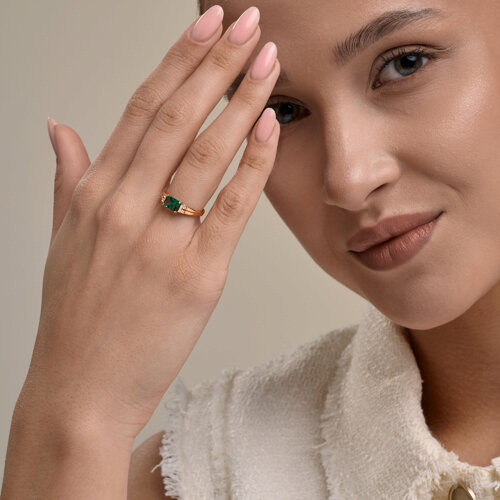 Кольцо золотое пробы 585 с изумрудом гидротермальным SOKOLOV 717332