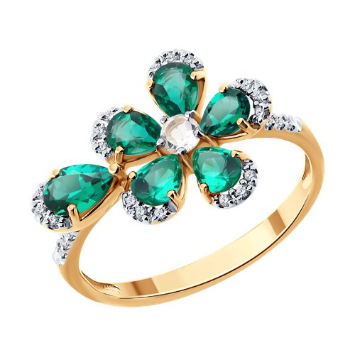 Кольцо золотое пробы 585 с изумрудом гидротермальным SOKOLOV 717360