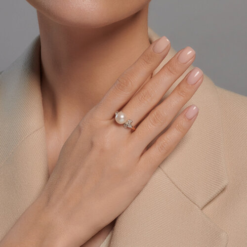 Кольцо золотое пробы 585 с жемчугом SOKOLOV 79-10019
