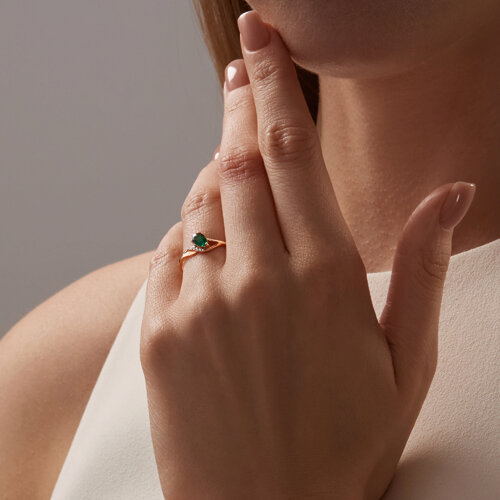 Кольцо золотое пробы 585 с изумрудом гидротермальным SOKOLOV 71-00246