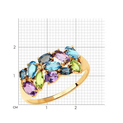 Кольцо золотое пробы 585 с миксом камней SOKOLOV 714682