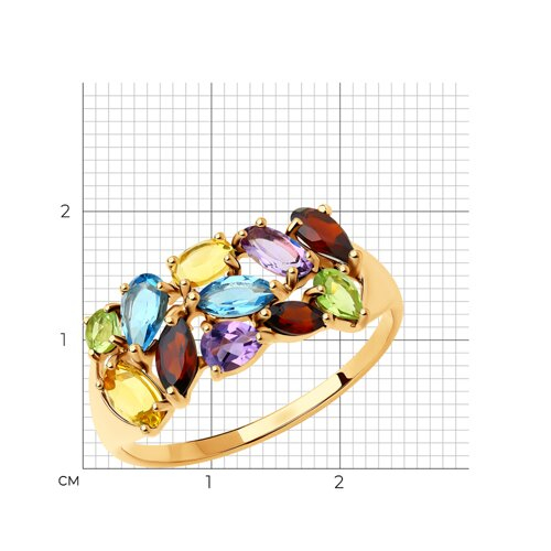 Кольцо золотое пробы 585 с миксом камней SOKOLOV 714683
