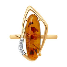 Кольцо золотое пробы 585 с янтарём SOKOLOV 715880