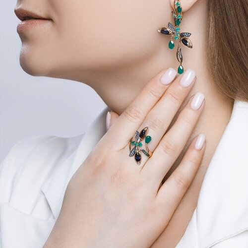 Кольцо золотое пробы 585 с миксом камней SOKOLOV 715779