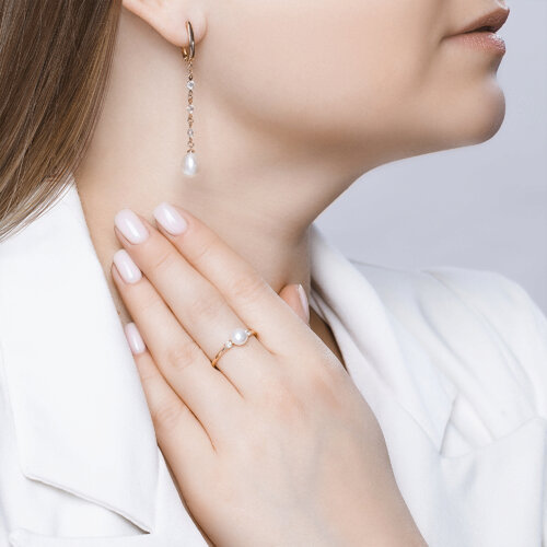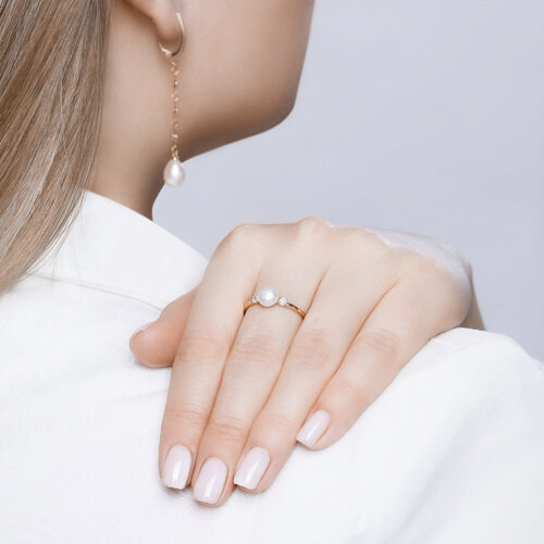 Кольцо золотое пробы 585 с жемчугом SOKOLOV 791053