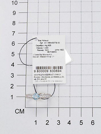 1 Топаз Sky Blue Голубой Круг 6,0 44 Кубический цирконий Белый Круг 1,50 Фианитовая обсыпка