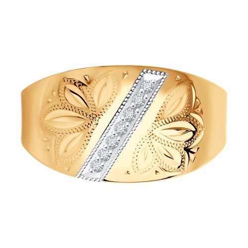 Кольцо с гравировкой с фианитами SOKOLOV 014744