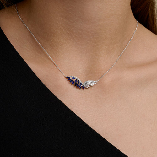 Колье из белого золота с бриллиантами и сапфирами SOKOLOV 2070063-3