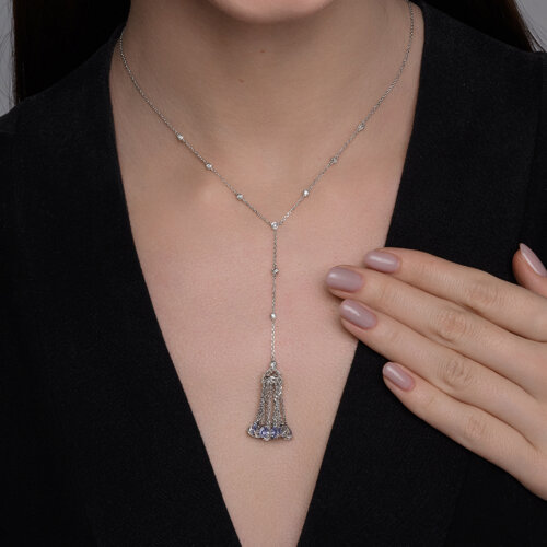 Колье из белого золота с бриллиантами и танзанитами SOKOLOV 6074070-3