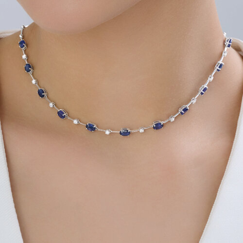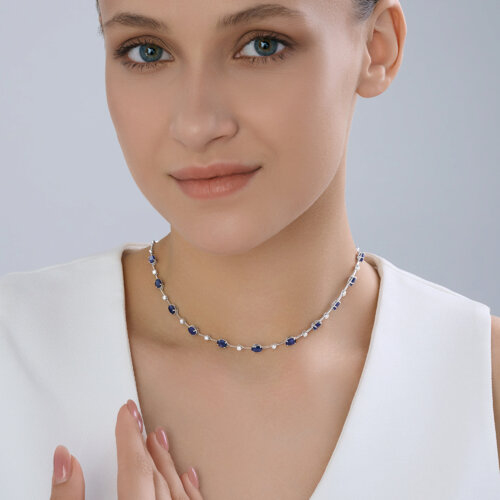 Колье из белого золота с сапфирами и бриллиантами выращенными SOKOLOV 2070060-3-5