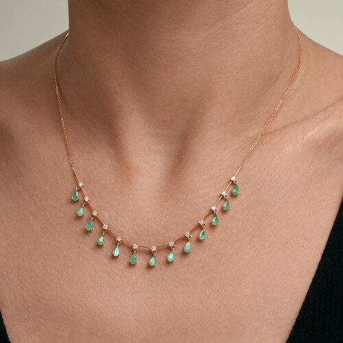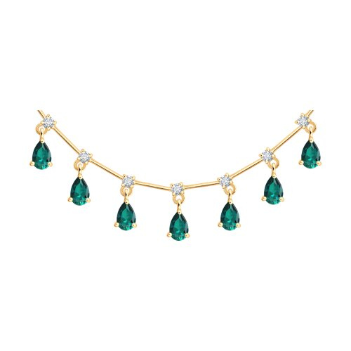 Колье из золота с изумрудами и бриллиантами выращенными SOKOLOV 3070048-5