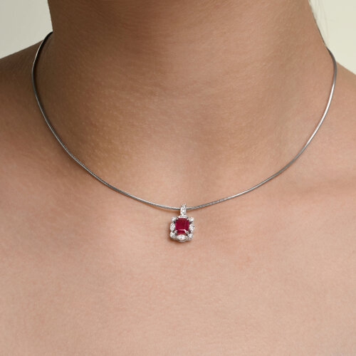 Подвеска из белого золота с рубином и бриллиантами выращенными SOKOLOV 4030216-3-5