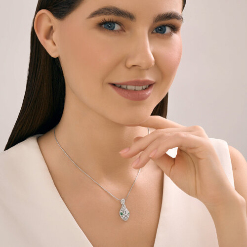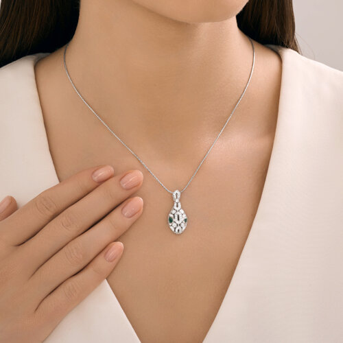 Подвеска из белого золота с бриллиантами и изумрудами SOKOLOV 3030236-3