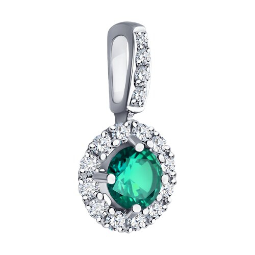 Подвеска из белого золота с бриллиантами и изумрудом SOKOLOV 3030187-3