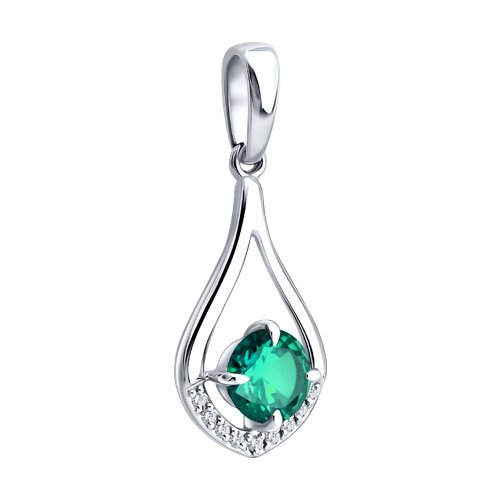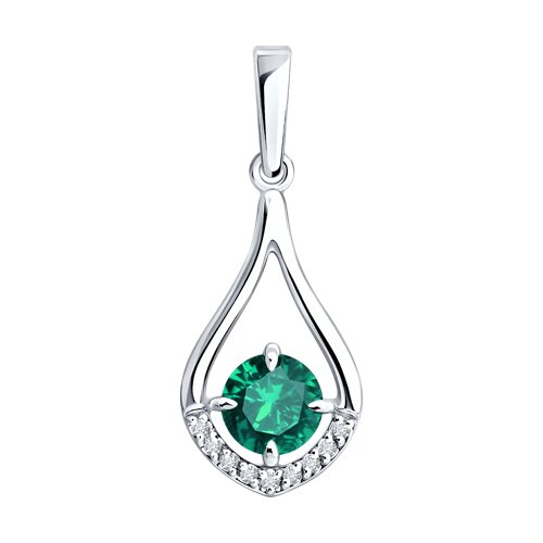 Подвеска из белого золота с бриллиантами и изумрудом SOKOLOV 3030273-3