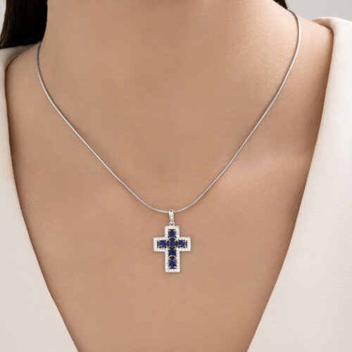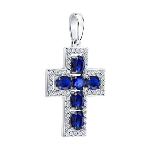 Подвеска из белого золота с бриллиантами и сапфирами SOKOLOV 2030357-3