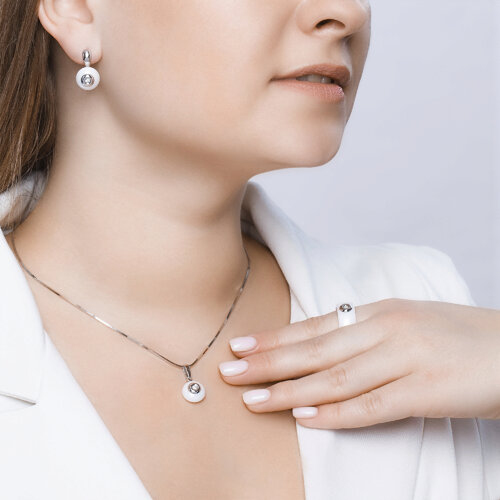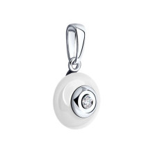 Подвеска из белого золота с бриллиантом и белой керамической вставкой SOKOLOV 6035005