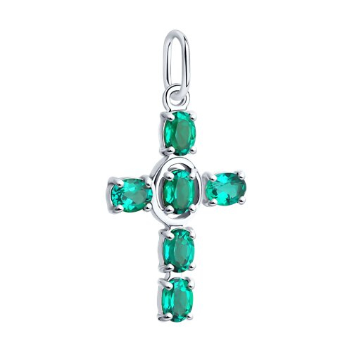 Подвеска из белого золота с изумрудами SOKOLOV 3030197-3