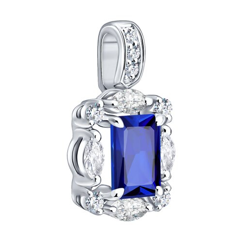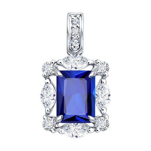 Подвеска из белого золота с сапфиром и бриллиантами выращенными SOKOLOV 2030380-3-5
