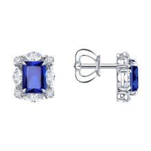 Серьги из белого золота с сапфирами и бриллиантами выращенными SOKOLOV 2021349-3-5