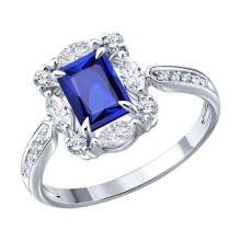 Кольцо из белого золота с сапфиром и бриллиантами выращенными SOKOLOV 2011398-3-5