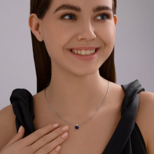 Подвеска из белого золота с сапфиром и бриллиантом выращенным SOKOLOV 2030347-3