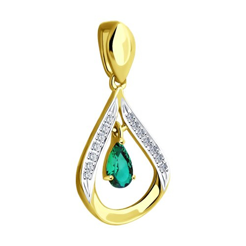 Подвеска из желтого золота с бриллиантами и изумрудом SOKOLOV 3030117-2