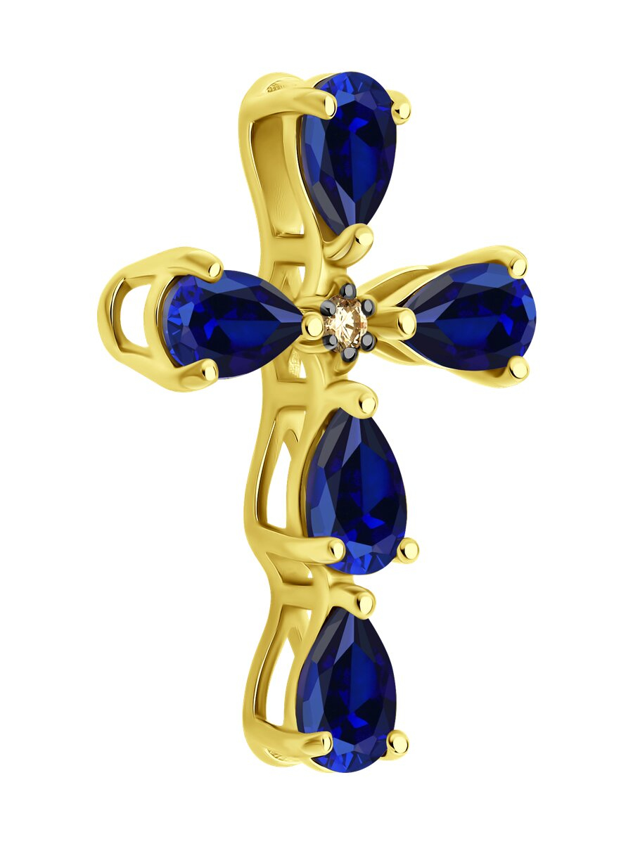 Подвеска из желтого золота с бриллиантом и сапфирами SOKOLOV 2030362-2