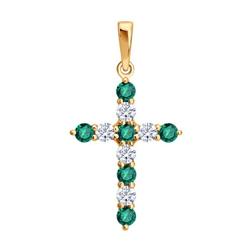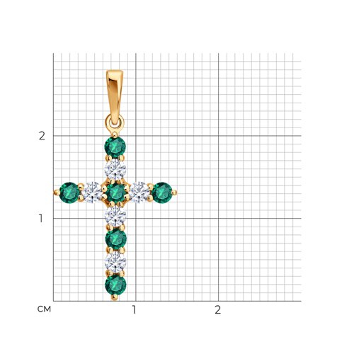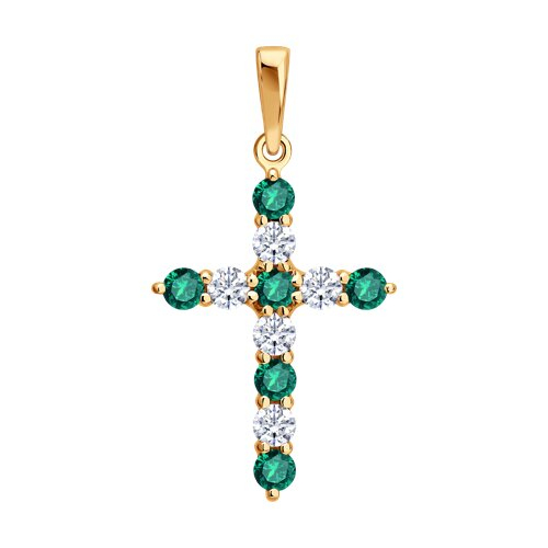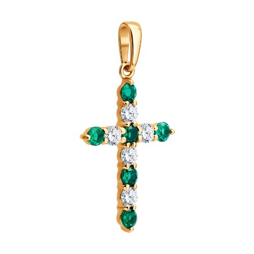 Подвеска Крест золотая пробы 585 с изумрудом гидротермальным SOKOLOV 733126