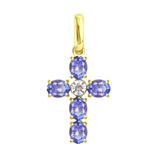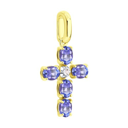 Подвеска Крест золотая пробы 585 с танзанитом SOKOLOV 732949-2