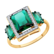 Кольцо золотое пробы 585 с изумрудом гидротермальным SOKOLOV 71-00374