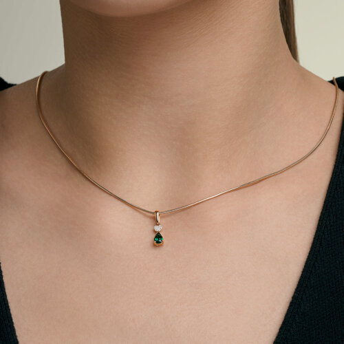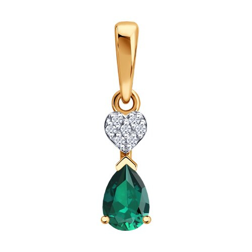 Подвеска золотая пробы 585 с изумрудом гидротермальным SOKOLOV 73-00207